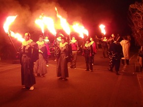 日が落ちると、当時の南蛮の衣装で着飾った南蛮行列が町を練り歩き、PVの皆さんと後ろを歩きました。