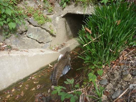 最近では昨年10月にはこんな写真も(下図)。カルバートの中に、獲ったのであろうアオサギを運びこむヤマネコの姿も撮影されました。隠れてゆっくり食事をするのにちょうどいいのかも知れません。