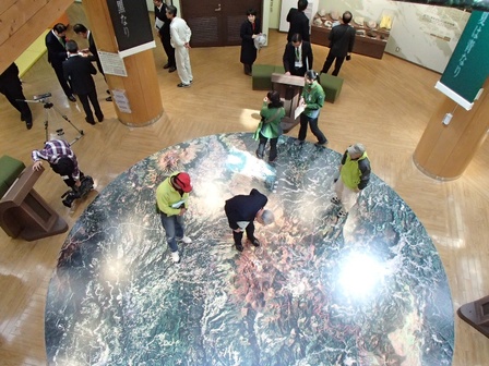 また、1階部分では、元あったくじゅう連山のジオラマの替わりに、直径6mの衛星写真を床に取り付け、周辺の見所を検索できる情報検索システム「くじゅうナビ」を4箇所に配置し、どなたでも気軽にわかりやすく登山道や周辺施設の情報を検索できるようになっています。