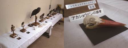 ・間近でじっくり観察できる剥製と頭骨の展示、