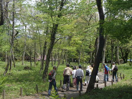 新緑の野草園をみんなで観察