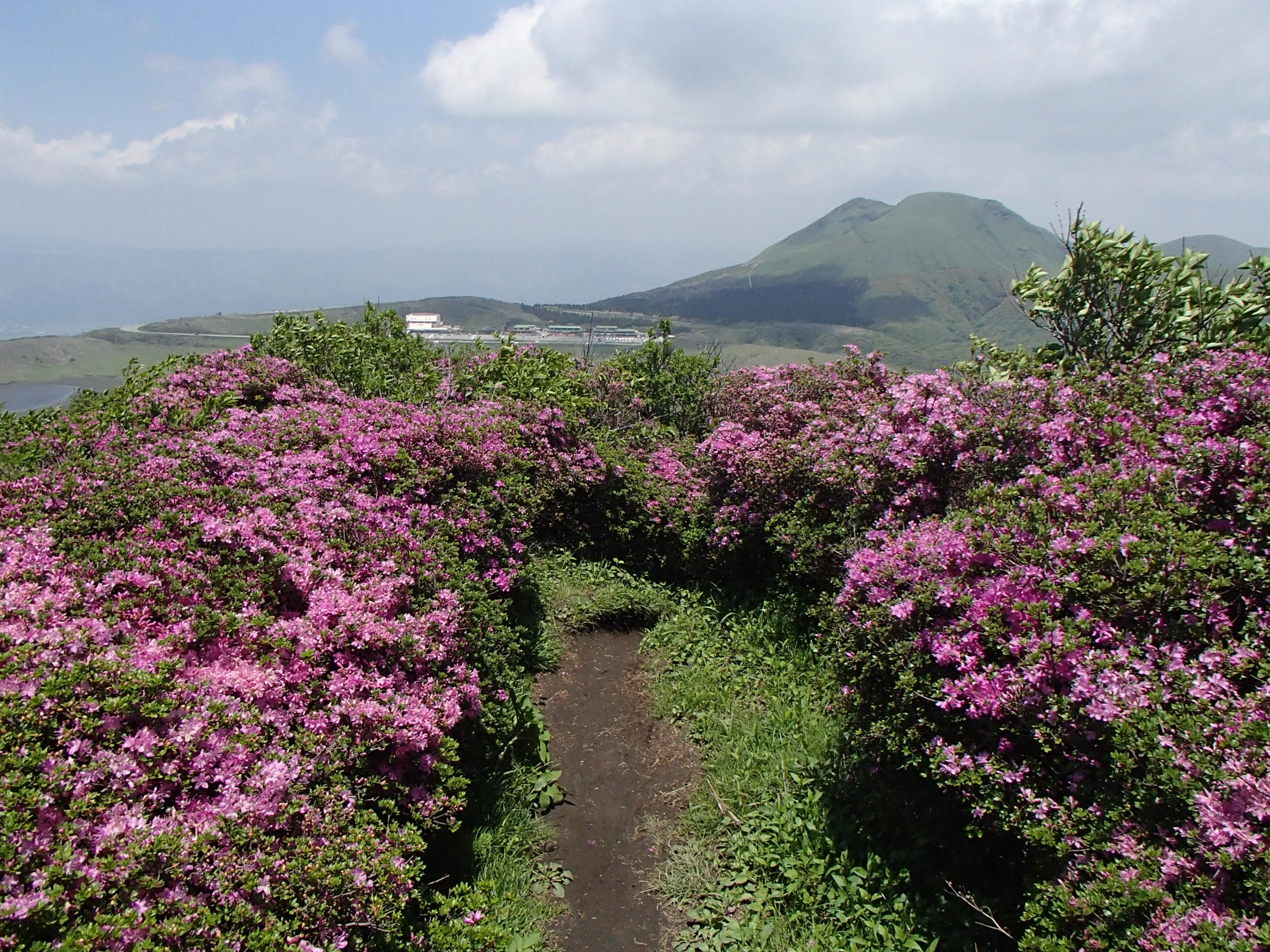 この時期、阿蘇の草千里ヶ浜・烏帽子岳、仙酔峡、古坊中(山上広場)、杵島岳で見頃を迎えているのは、ミヤマキリシマです!これを目当てに阿蘇を訪れる方もたくさんいらっしゃいます。