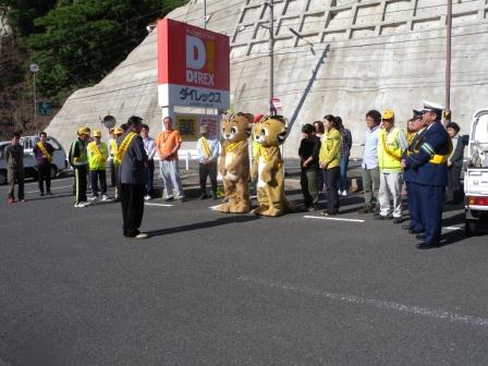 対馬北区交通安全協会、対馬北警察のご協力の下、「人にもヤマネコにも優しい運転を!」とドライバーに呼びかけました。