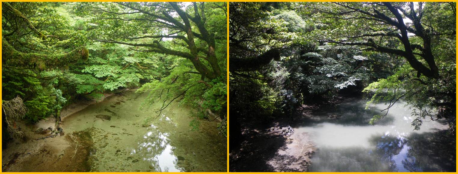 ▲噴火50分前の淀川(左)と、噴火から2時間後の淀川(右)。