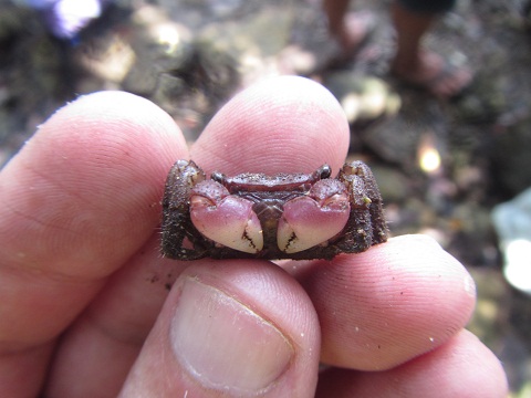やぐじゃーまの威嚇のスタイルは、歌舞伎役者のよう。でも、カニの威嚇スタイルってみんなこんな感じだったような気が・・・・。メスのおなかには卵も。満月が近かったので、ほかの種類のカニたちも同じように卵を抱えていました。