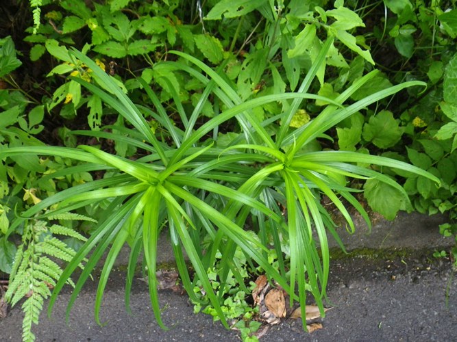 細くてツヤのある葉が特徴的で、テッポウユリなどとは簡単に区別をすることができます。こちらも狭い範囲に思っていた以上に生育していました。