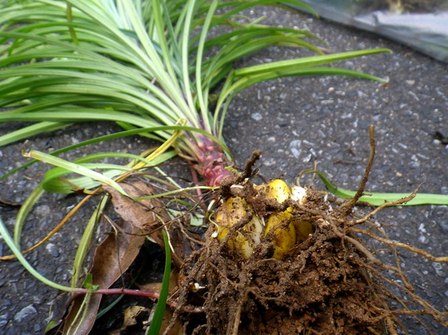 深く根がついているものは周囲からスコップで彫り上げるようにして抜き取ります