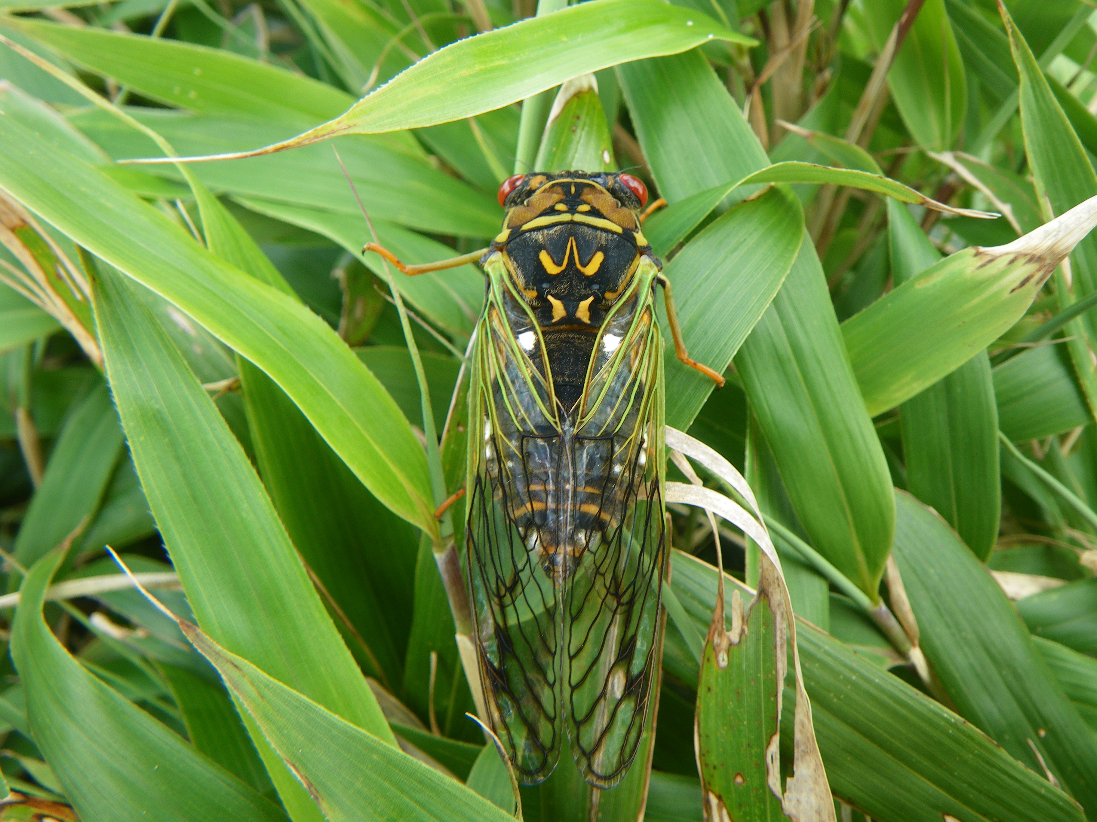 歌舞伎の「隈取り」のようだとも言われ、かっこよく、とても美しいセミなんですよ♪