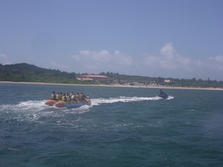 しかし、スノーケリングポイントまでの移動はなんとバナナボート!