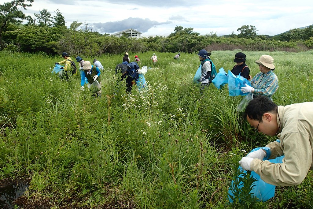 梅雨明けぬくじゅうでは先日、タデ原湿原周辺の外来種の駆除作業が行われました。