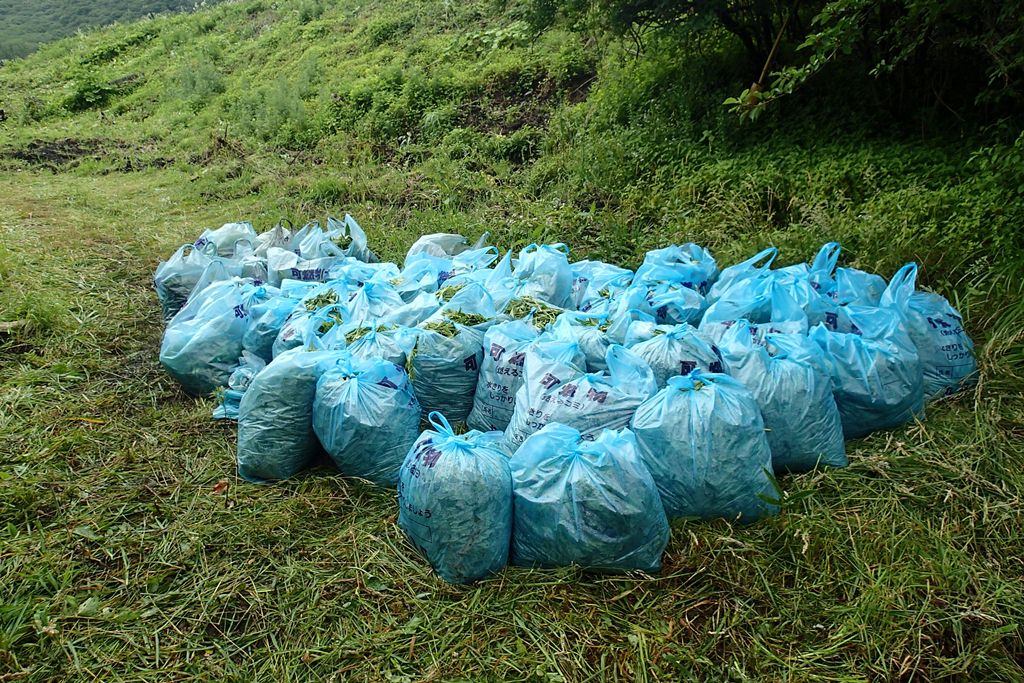 1日の作業を終えて駆除したオオハンゴンソウは48袋にもなりました。