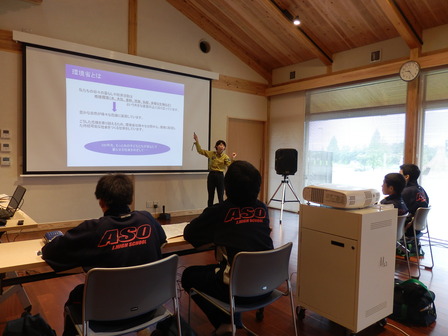 初日、午前中は、草嶋レンジャーから国立公園やレンジャーの仕事、私から阿蘇の草原の基礎知識などについてレクチャーしました。子どもたちからも、「なぜこの仕事を選んだのですか?」「やりがいはありますか?」「きついと思うことはありますか?」など、するどい質問が出ていました。