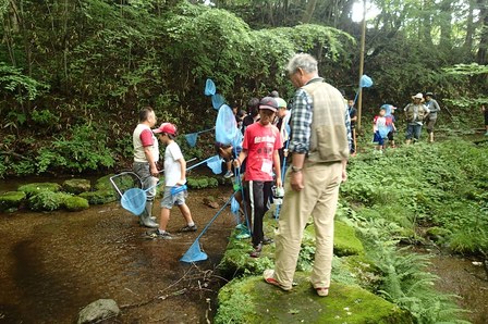 2日目は大野川の源流探検として水辺の生きもの調べを行いました。