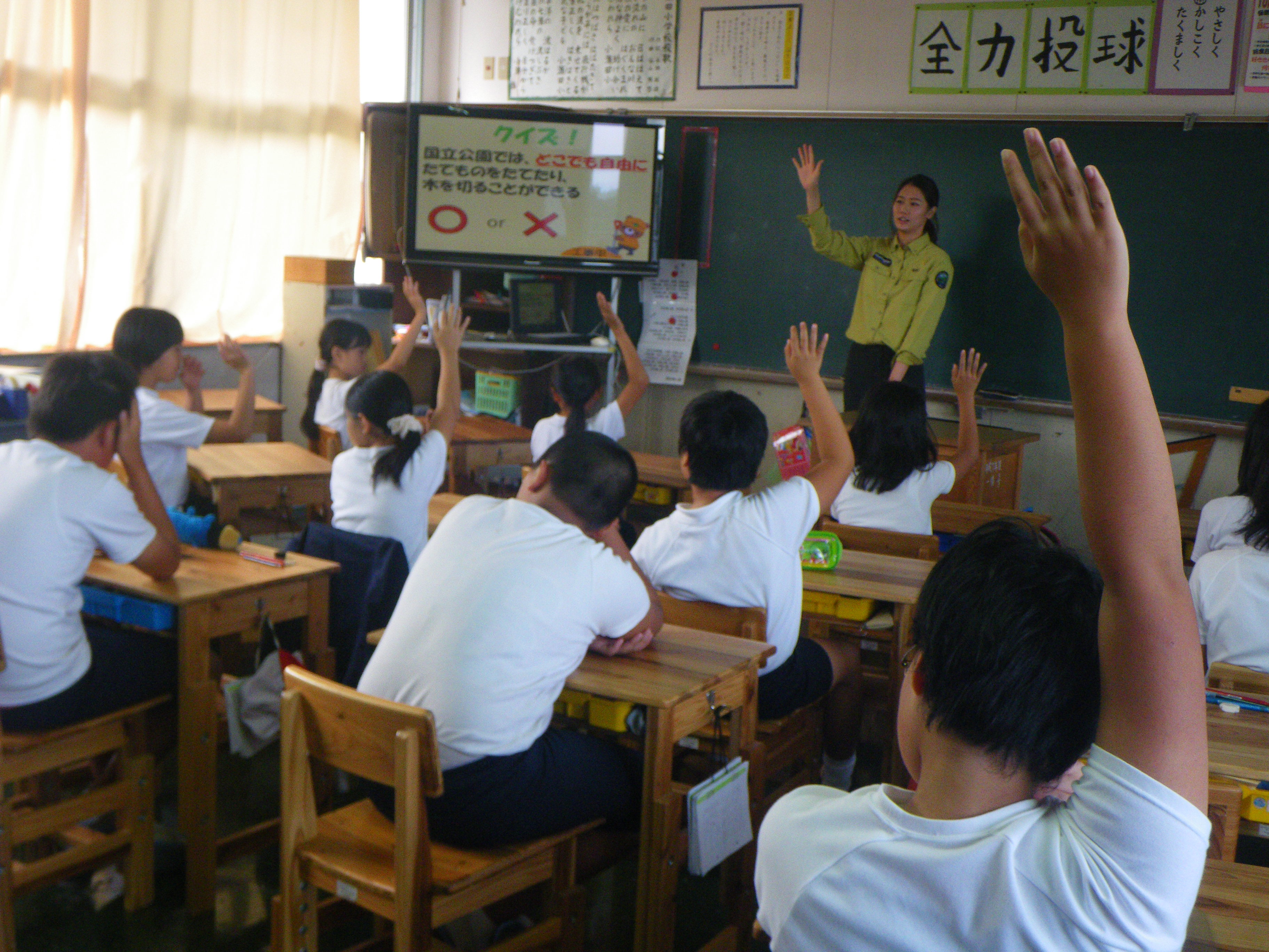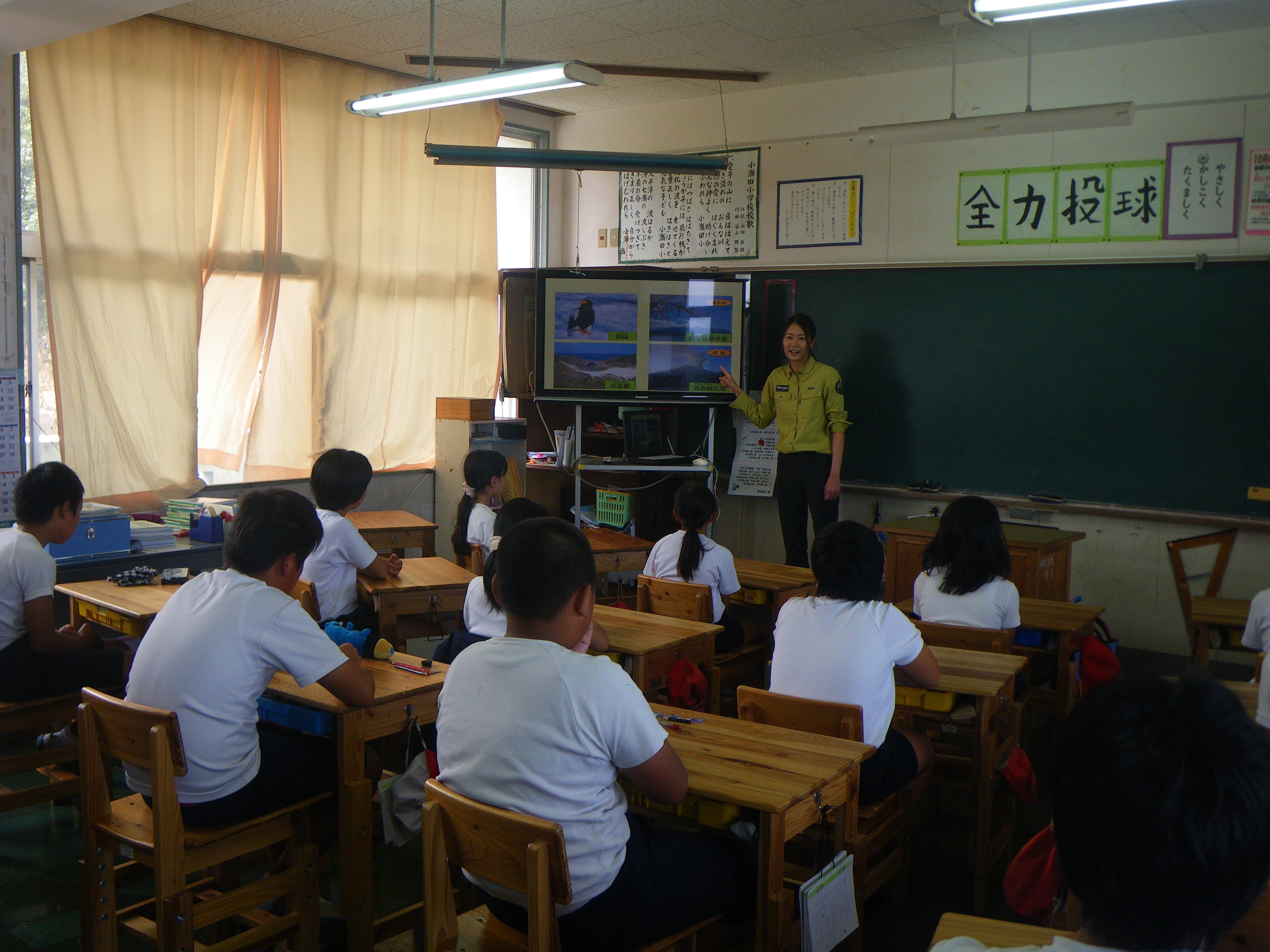 屋久島自然保護官事務所では、毎年屋久島町立八幡小学校の4年生を対象に、国立公園や世界遺産、屋久島の自然についての出前授業を実施していますが、今年から新たに別の小学校でも授業をさせて頂くことになりました(^^)