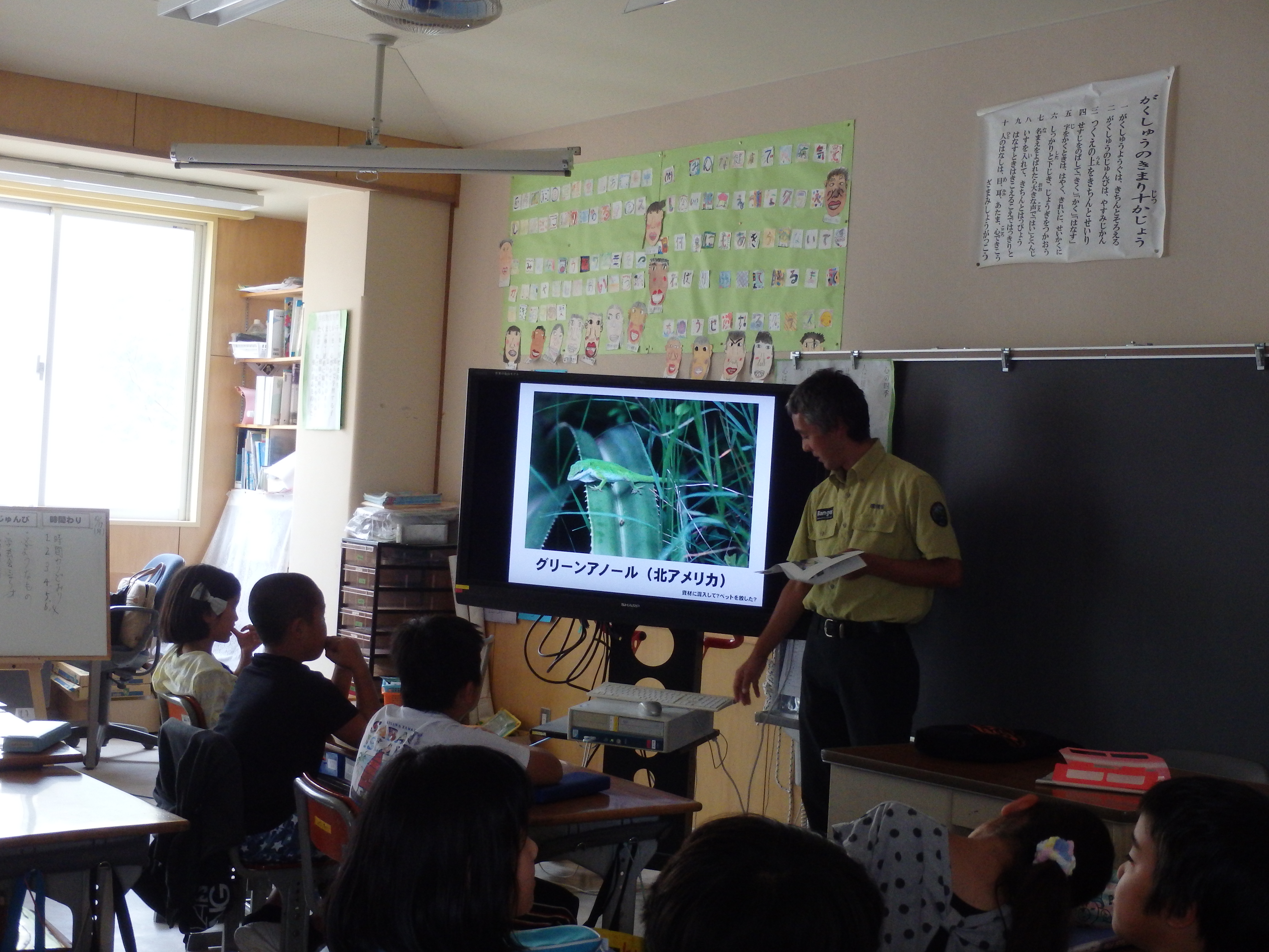 座間味小学校の3・4年生に環境学習の一環で、特定外来種の授業をして欲しいと