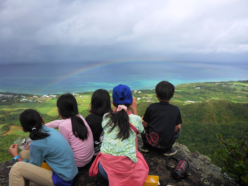 石垣島北部の景色を見渡しながら振り返りをしていると、なんとうっすら虹がでてきました!