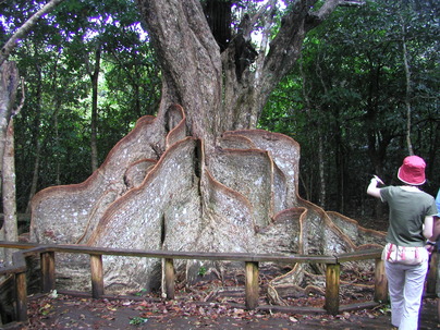 表土が薄く根を地中深く伸ばせないので、根を板状に縦に伸ばして巨体を支えています。