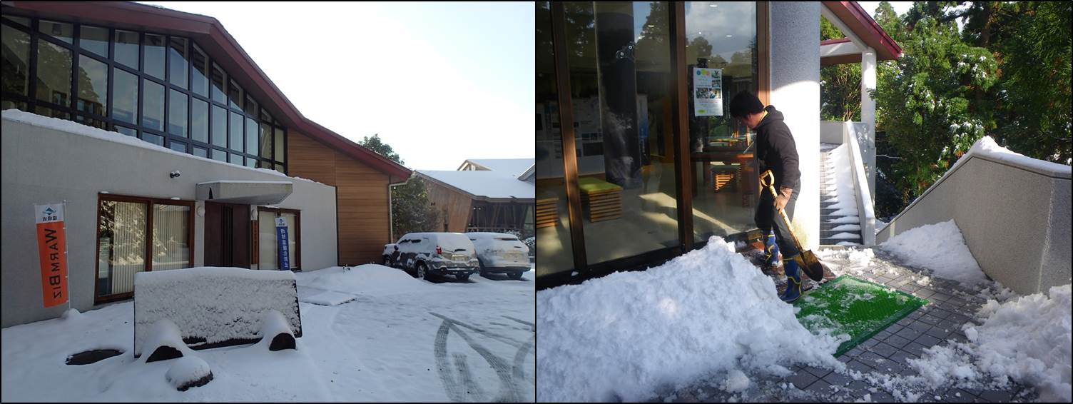 まさかセンターで雪かきをすることがあるとは夢にも思いませんでした。