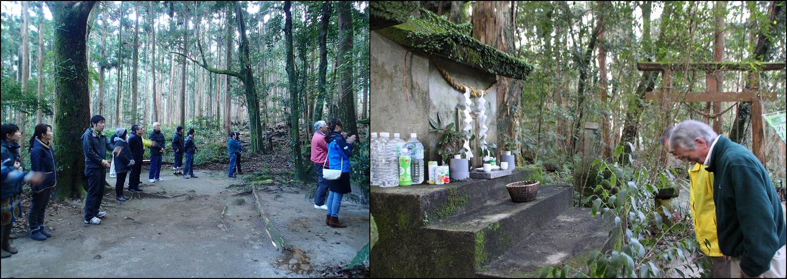 ここ牛床詣所は、山岳信仰の重要な行事である「岳参り」の際に、家族が山に詣でた男たちを出迎えた場所で、女人禁制のため岳参りに参加できなかった女性や子供たちが日ごろ遠い山奥の御岳を拝んだ場所です。いわば、里における信仰の聖地です。