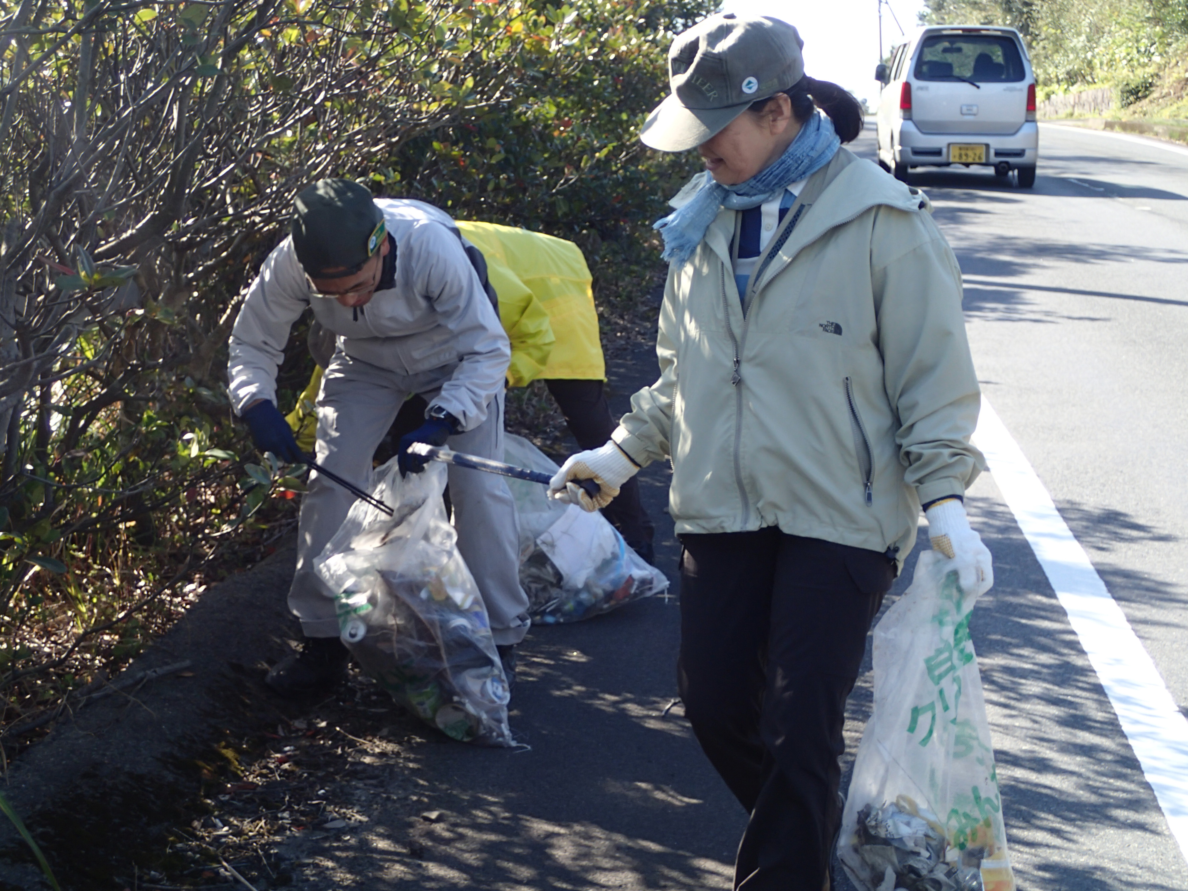 ▲清掃の様子。車に注意しながら素早くゴミを拾っていきます。