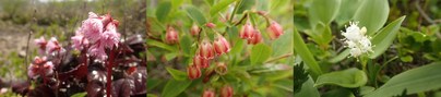 (左から、イワカガミ、ウスノキの花、マイヅルソウ)