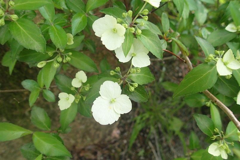 (▲中岳中腹探勝路にて:ミヤマキリシマ、新緑、サワフタギの白い花などが出迎えてくれました。)
