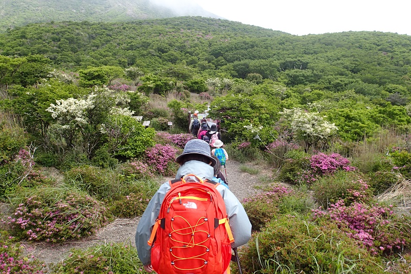 見頃のミヤマキリシマを愛でながら登山を楽しもう!ということで、5月21日に高千穂河原周辺で自然観察会を開催しました。