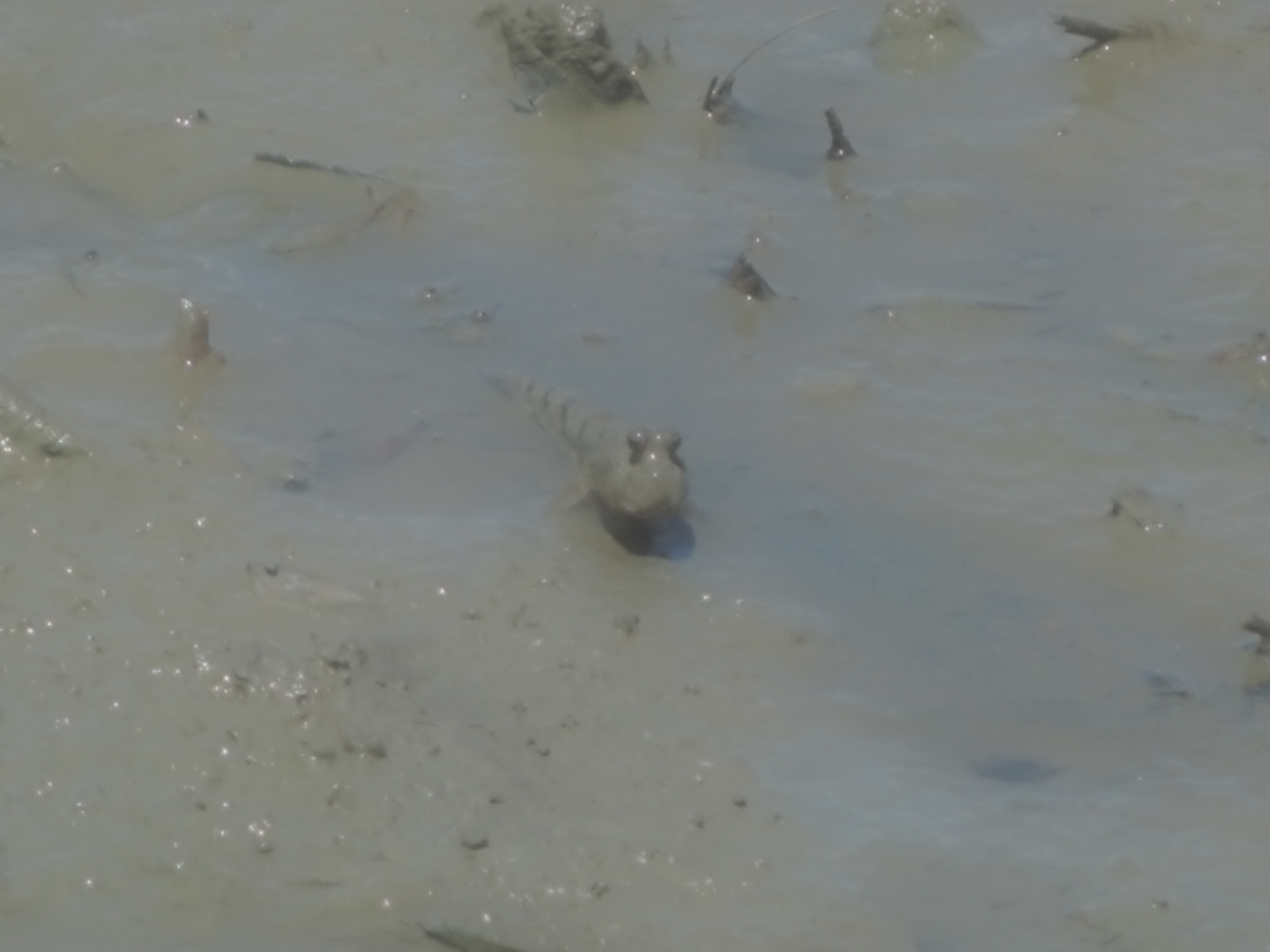 そうです、上の写真がトビハゼで、下の写真がムツゴロウです。飛び出た目が私のお気に入りです。産卵の時期なのでしょう。体色をピンク色に変えたトビハゼの姿もありました。