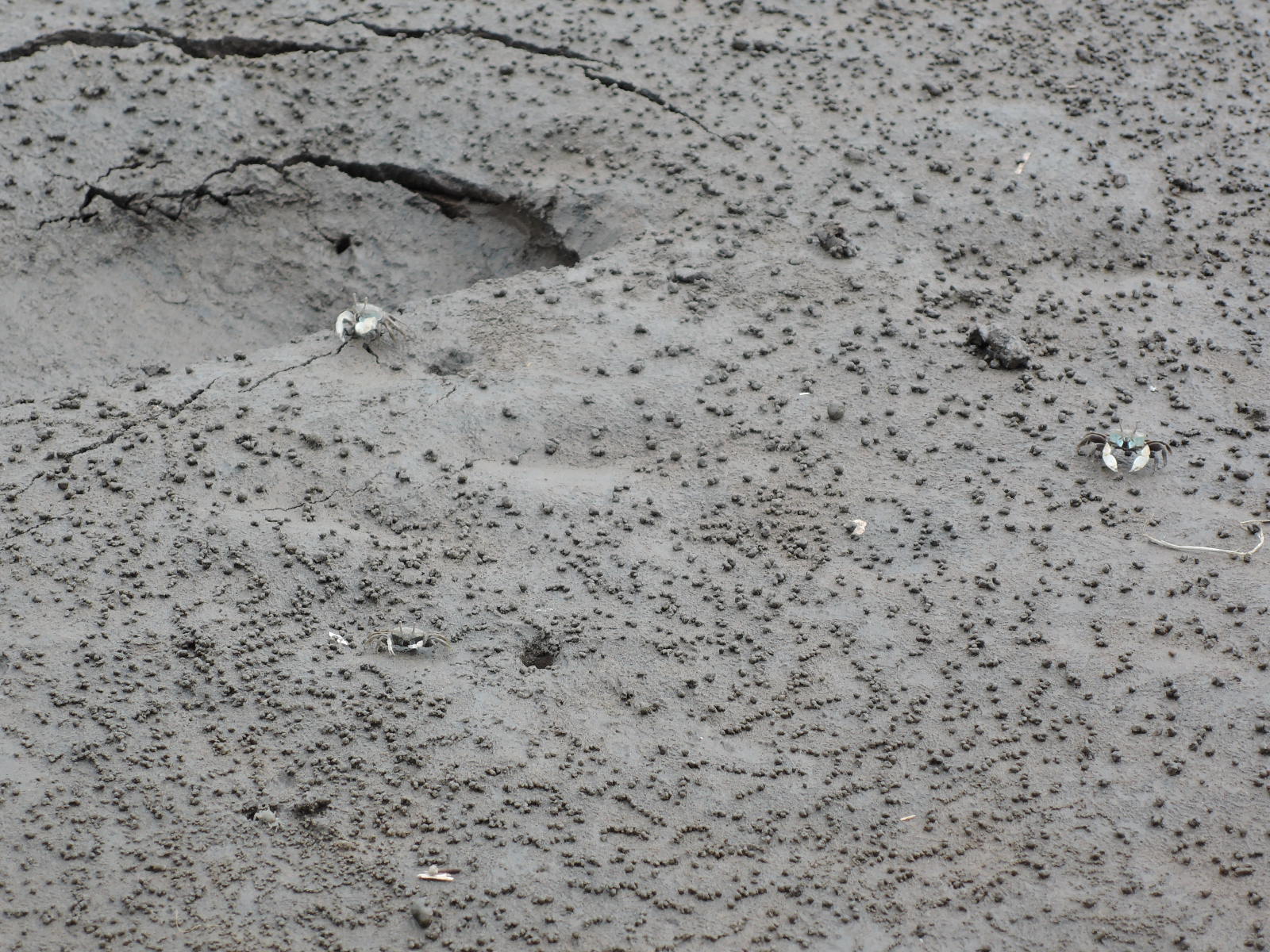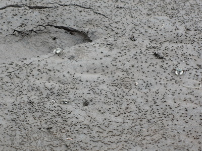 スパルティナ属の群落そばの干潟を辛抱強くじっと見つめていると、何とも愛くるしい生き物の写真を撮ることができました。