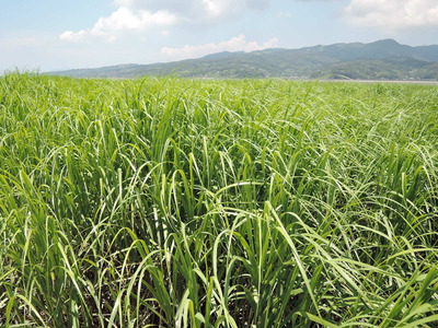 実はこの青年、近畿大学農学部環境管理学科の学生さんで、この大野川の河口域に青々と勢いよく生育している植物の研究のためのサンプルを採取しているのでした。