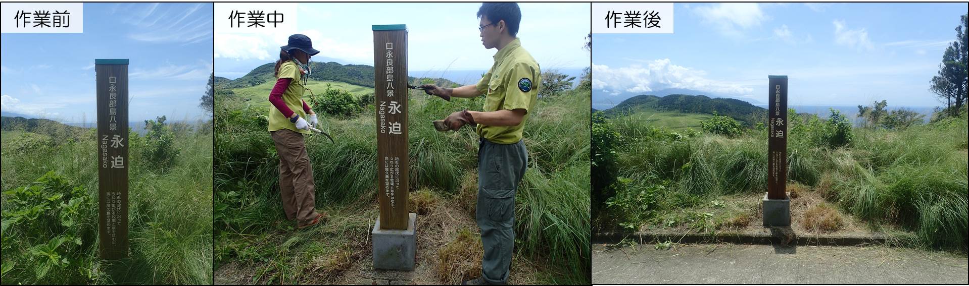 八景には環境省が設置した標識があり、今回標識の補修や周辺の草刈りも行いました。