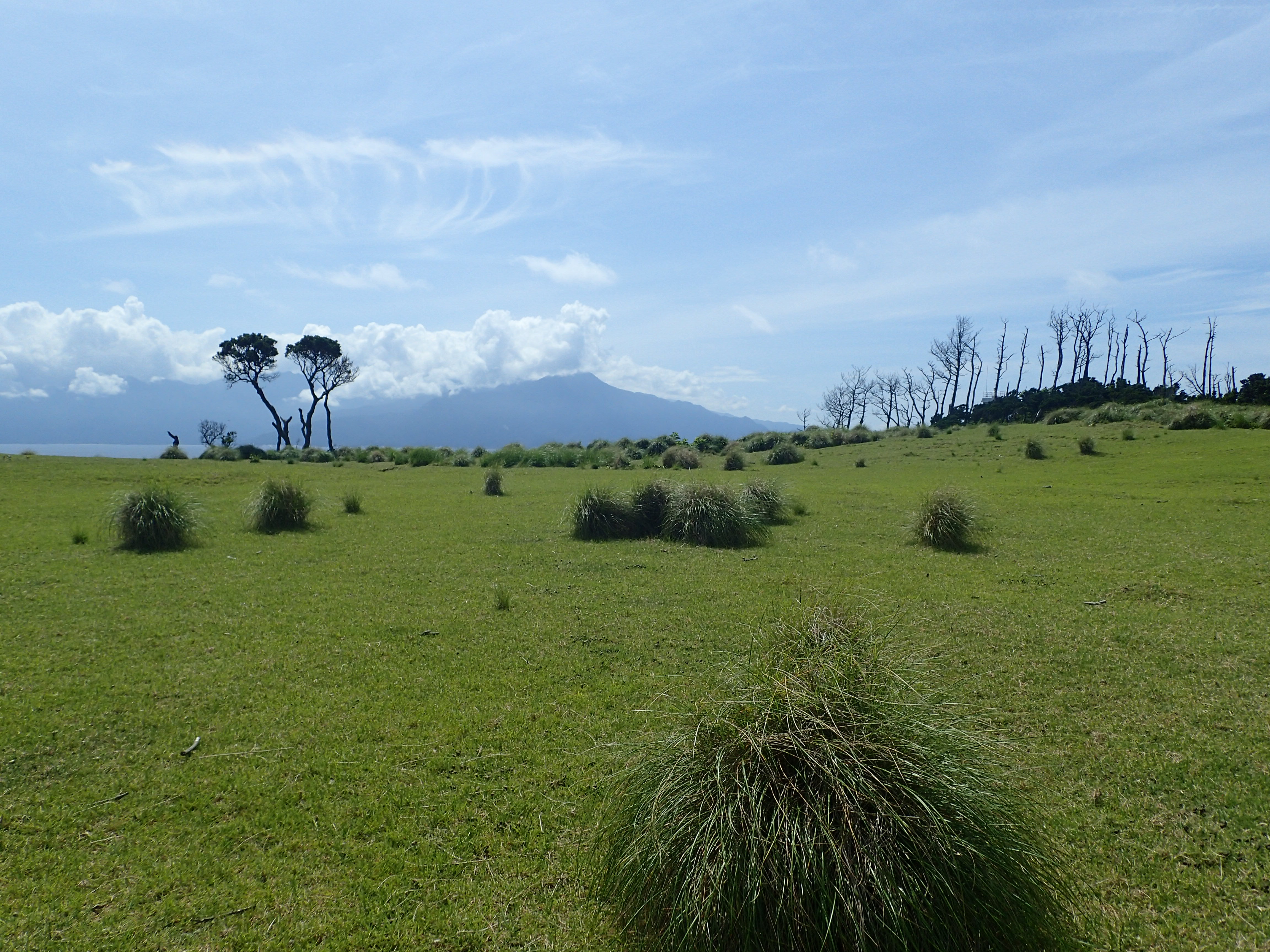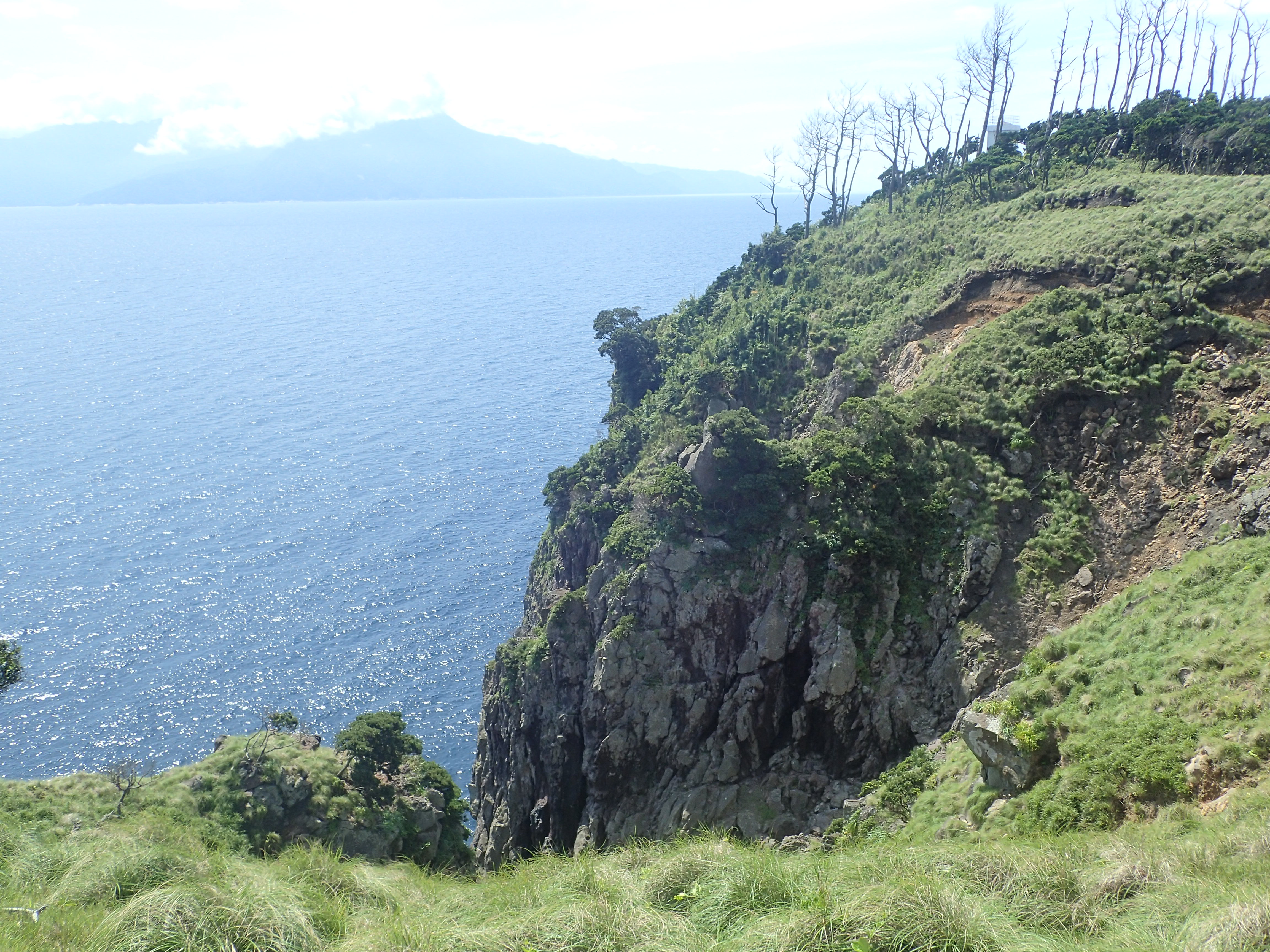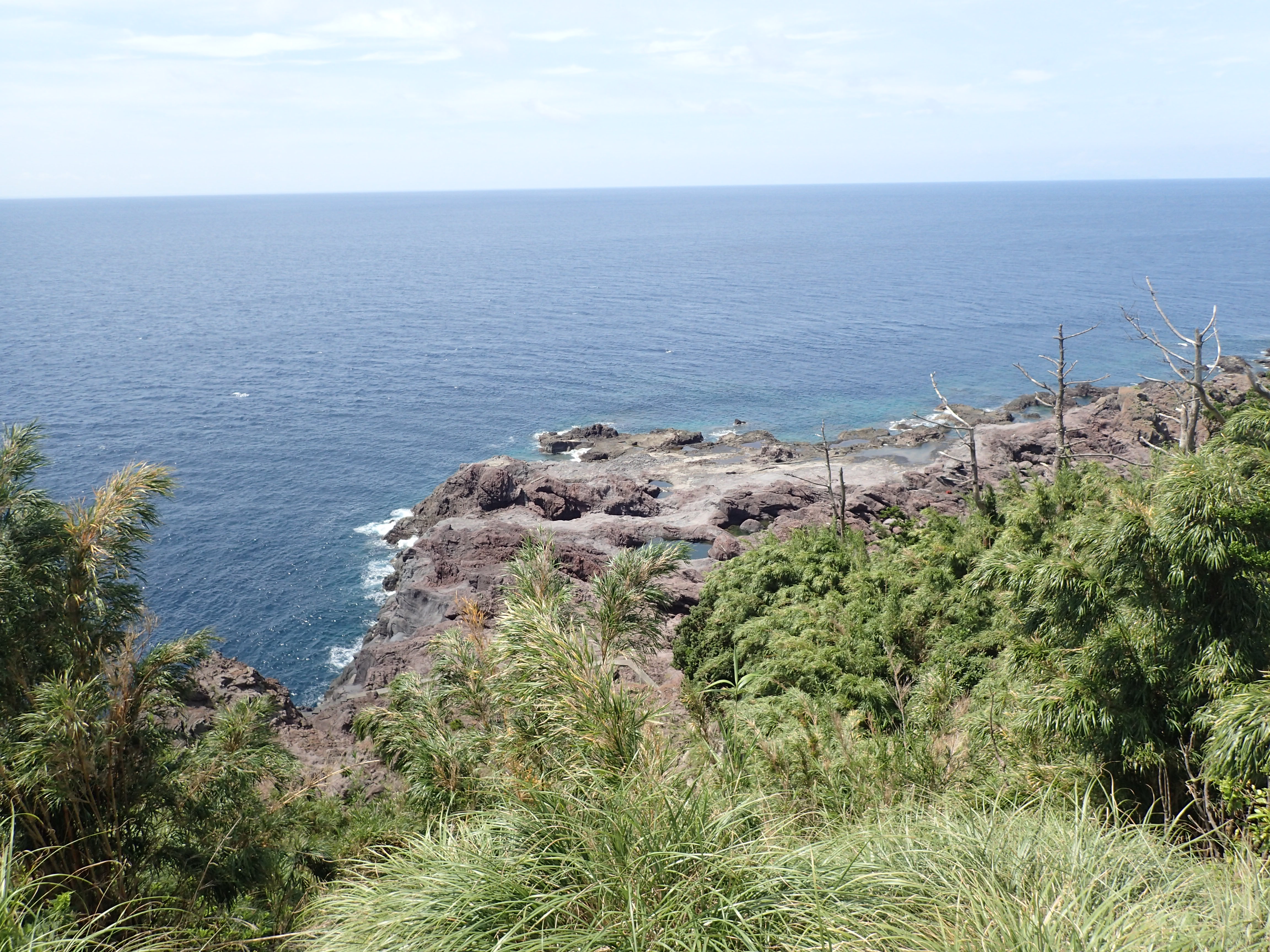 島の東端はメガ崎と呼ばれ、広大な草原や灯台がある他、黒潮の荒波によって形成された断崖やタイドプールなど変化に富んだ自然海岸を見ることができます。