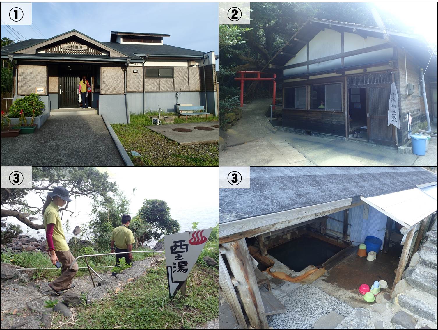 島民の方々による避難指示解除後の復旧作業によって、島内に湧き出る4箇所の温泉のうち3箇所の温泉が入浴可能です。