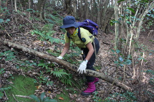 2016年11月16日こんにちは!五島自然保護官事務所の竹下です。10月30日(日曜)、ふれあい事業として毎年実施している七ッ岳(ななつだけ431.1m)登山に私もスタッフとして参加しました。開催の数日前、安全確認のため登山ルートを事前調査し、台風等の影響による倒木等の処理を行いました。