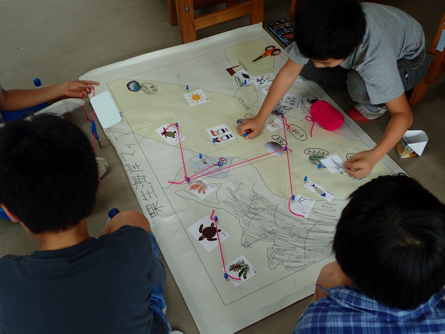 ▲ピンが抜けていく様子。生きものどうしのつながりを知り、たくさんの種類の生きものがいることの大事さやそれらの生きものが生きていける自然環境の大切さを学びました。