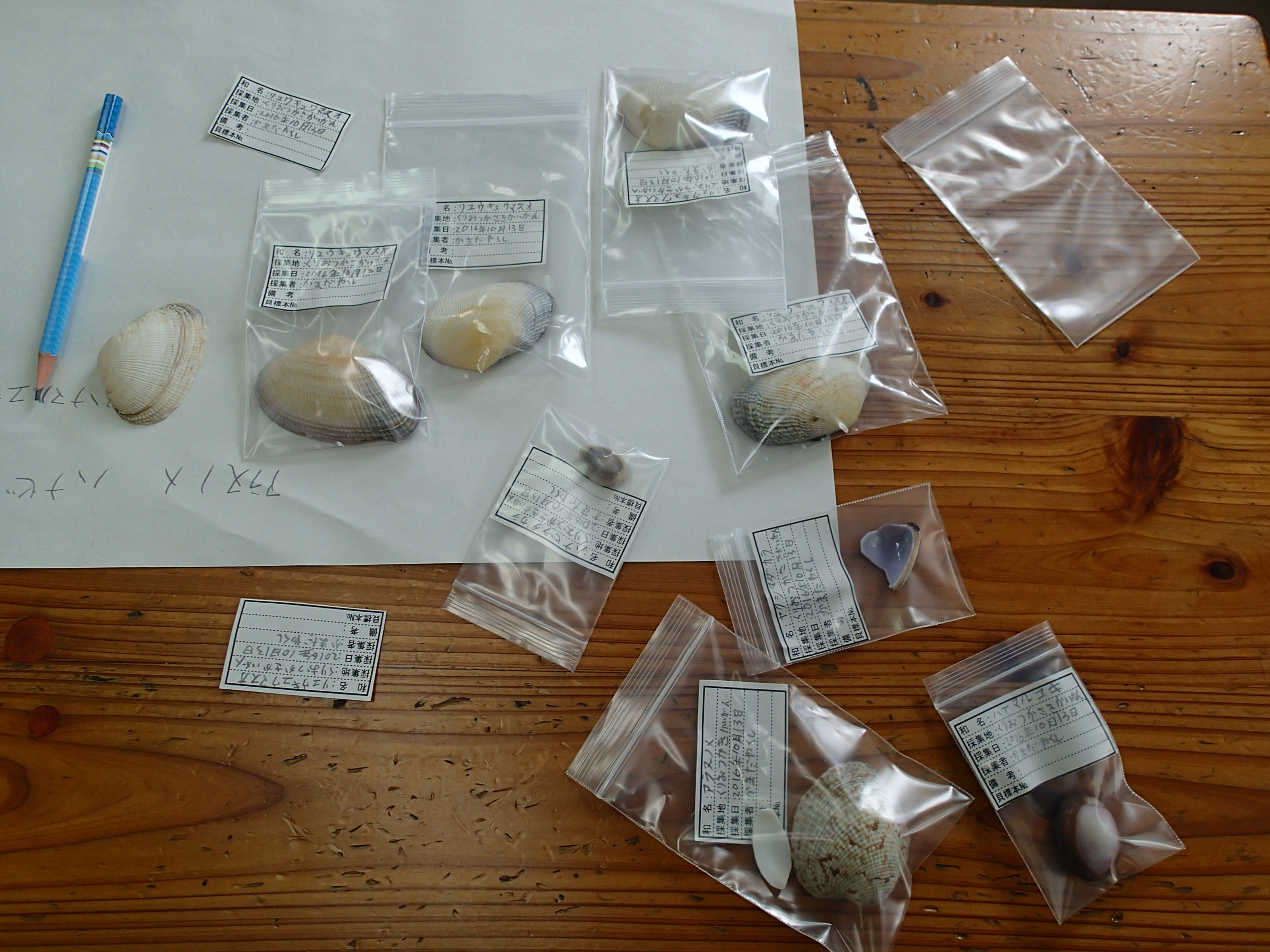 浜で貝殻を採集し、標本作りにも挑戦しました。
