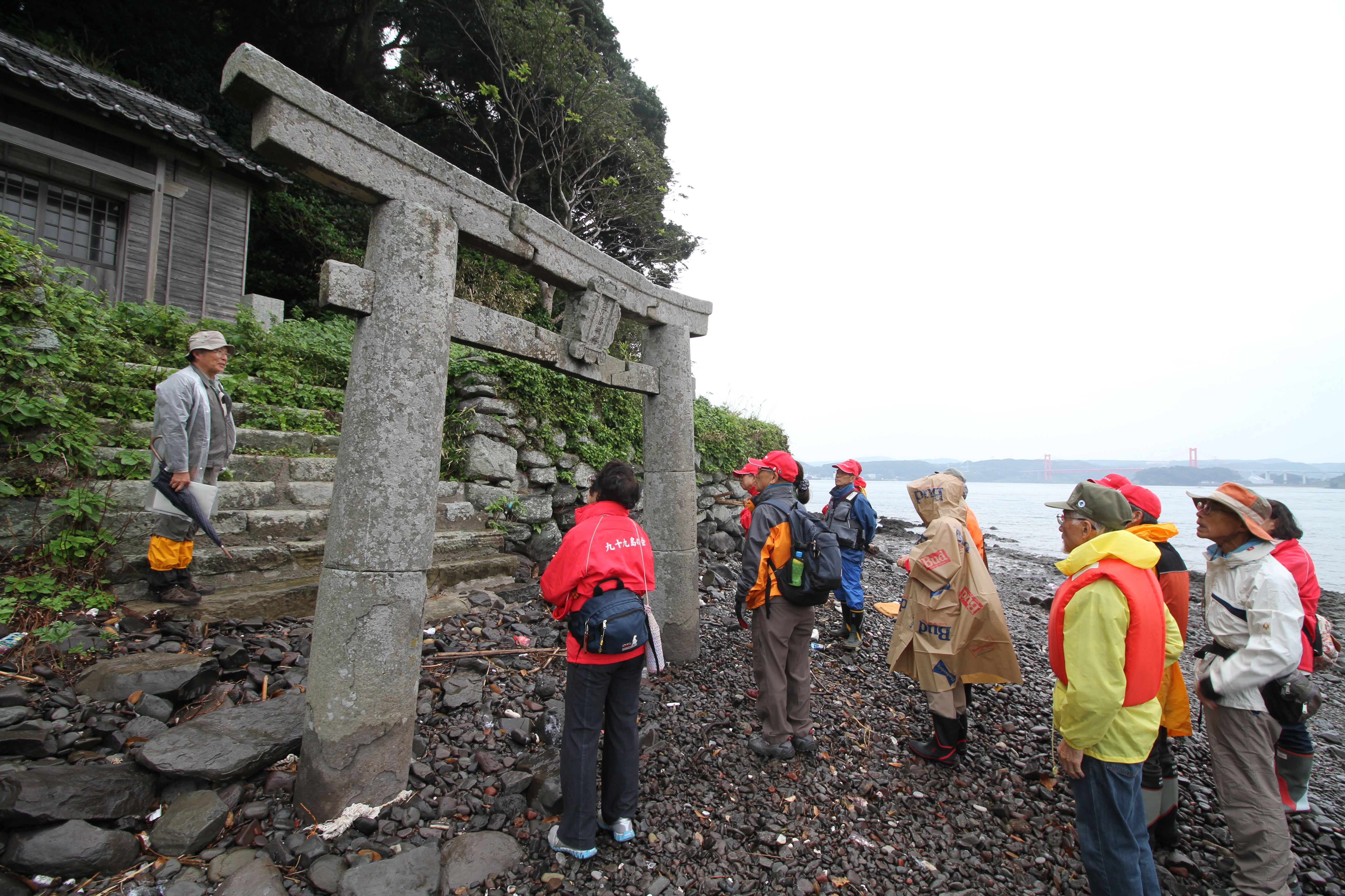 スタートは、まず平戸港正面の西海岸にある黒子島神社に参拝し、鳥居をくぐり裏山へ。