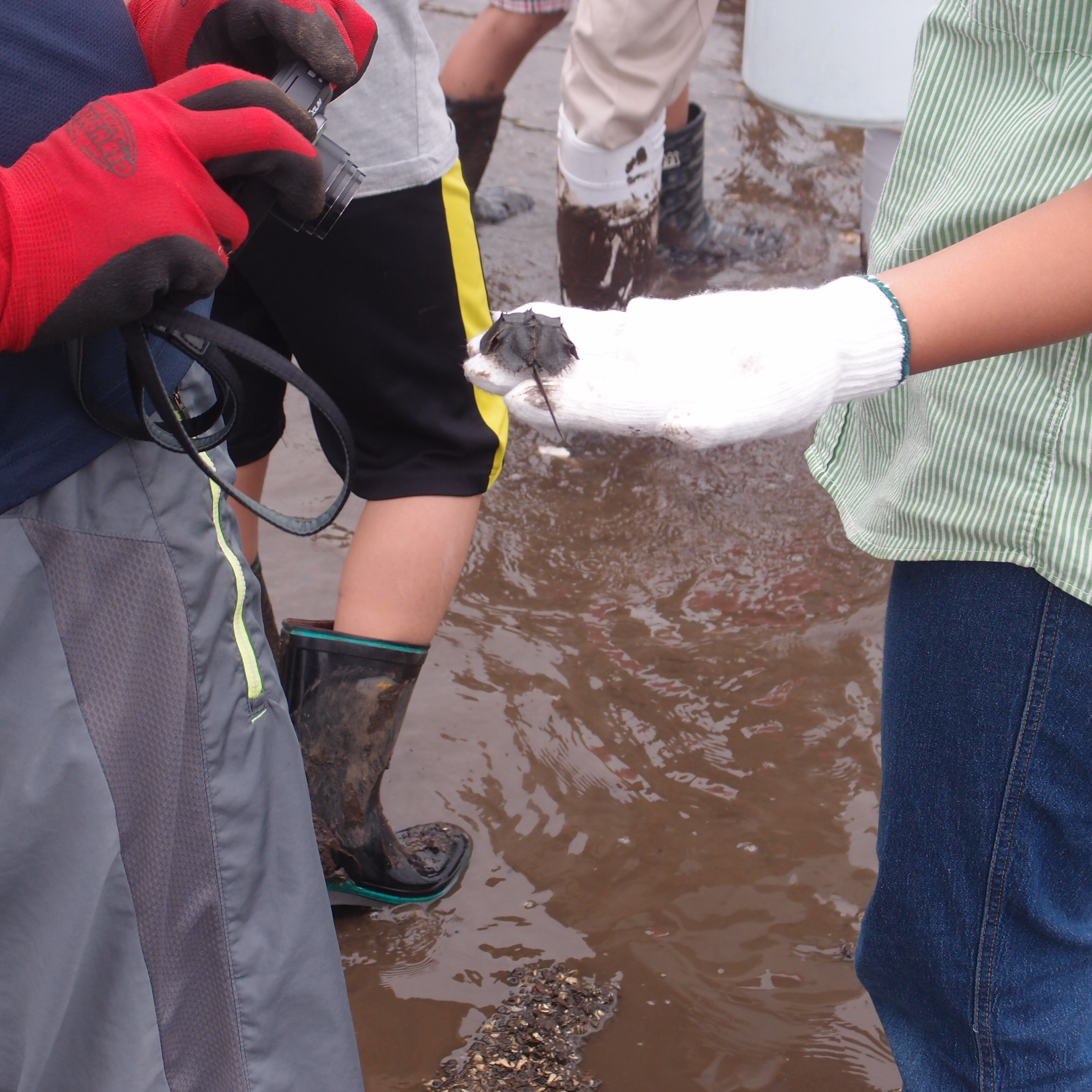 中でも干潟をはっていたドロアワモチに児童達は特に興味を示し、不思議そうに手に取り観察しながら我々の説明に聞きいっていました。