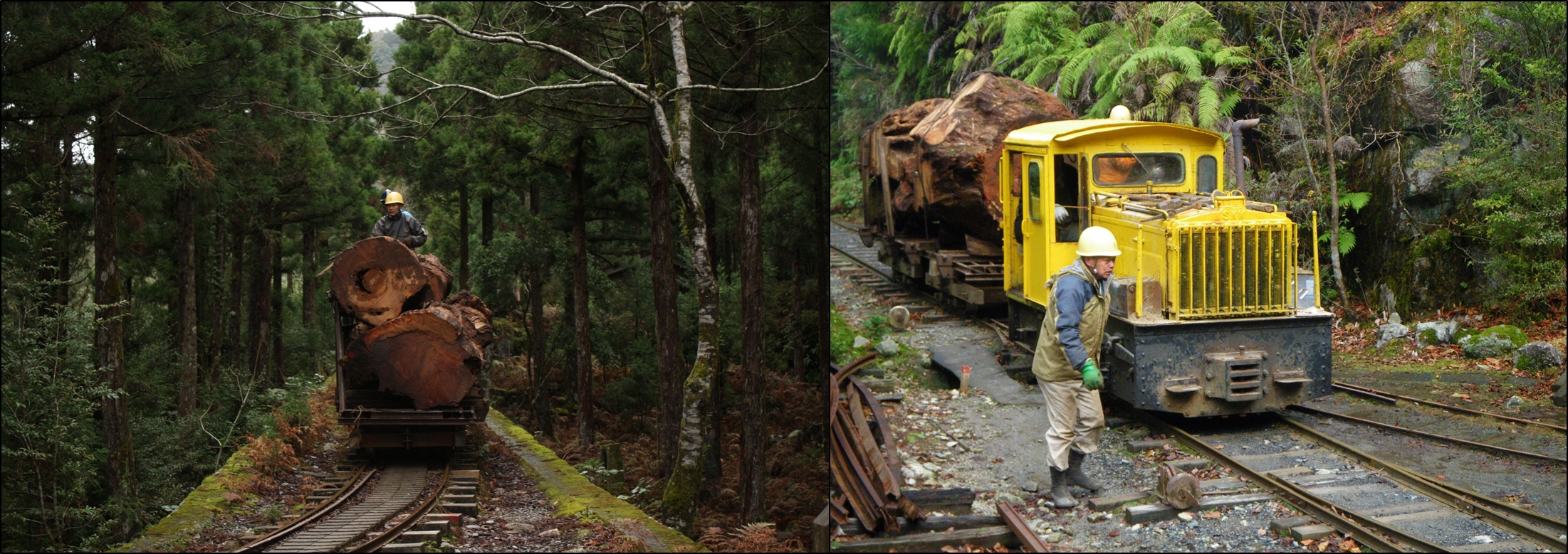 土埋木の生産は、トロッコで搬出できるようにトロッコ道に近い箇所から架線集材によって行われてきましたが、徐々に集材箇所が奥地化するとともにヘリ集材に依存するようになりました。
