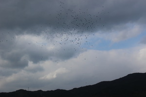 野鳥が季節の変化に合わせて日本や外国に行ったり来たりすることを「渡り」といいますが、「渡り方」の違いで、夏鳥・冬鳥・留鳥・旅鳥に分類されます。この分類にどの鳥が属するかは地域によって異なり、本土で見られるコゲラ・エナガ・カケスは、五島での生息は確認されていません。走行中、バスの車窓からミヤマガラスの大群が見えました。五島のハシブトガラスやハシボソガラスは留鳥ですが、ミヤマガラスやかわいい鳴き声を出すコクマルガラスは冬鳥として渡ってきます。