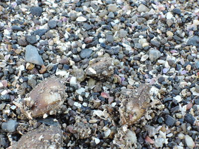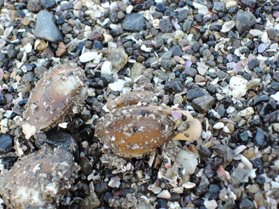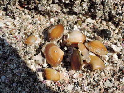 この貝について帰って調べてみると、どうやら「ヒラタヌマコダキガイ」という二枚貝の一種で、急激な環境の変化(塩分濃度が関係しているようです)などによって一時的に優先的かつ爆発的に出現する貝のようです。