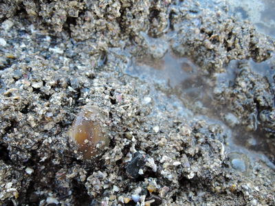 中央のクリーム色のあしを出した貝にご注目ください。