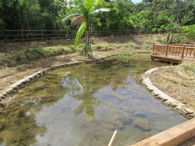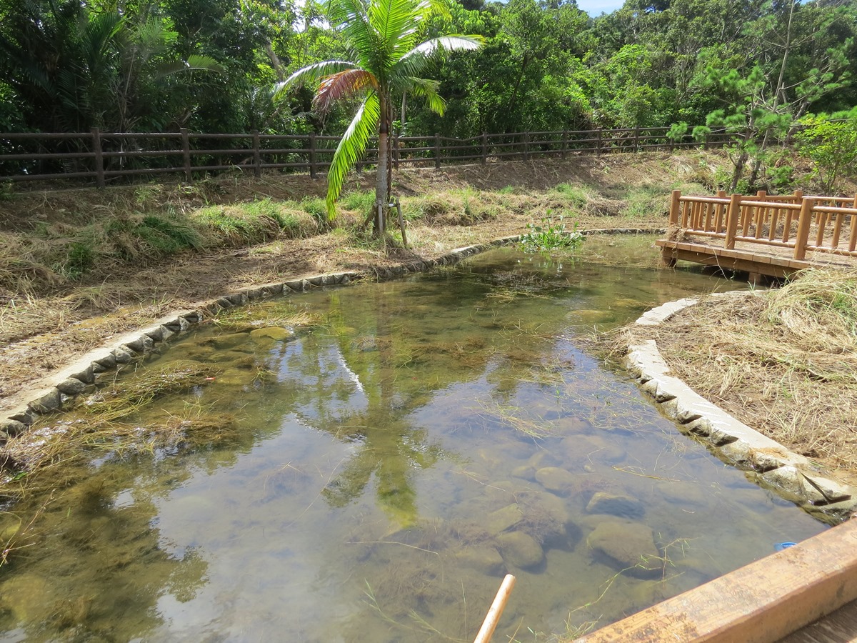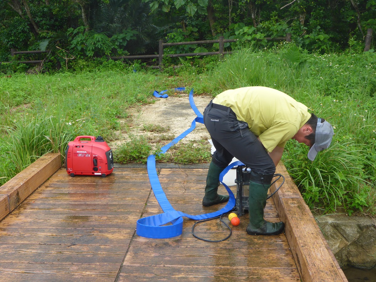 アメリカザリガニを確認して以降、人力での定期的な捕獲作業に加え、施設を管理している石垣市と調整しながら、池に流れ込む水をせき止めて、汲み上げ式ポンプで水を枯渇させる等して、アメリカザリガニの根絶に向けて取り組んでいたところでした。