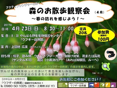センター主催の観察会やイベントはホームページで紹介していますので、やんばるへお越しの際は是非、お散歩観察会にも遊びに来てくださいね。