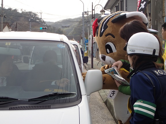 それにろくべえくんと一緒になって、ドライバーの皆さんに向けて安全運転を呼びかけました。