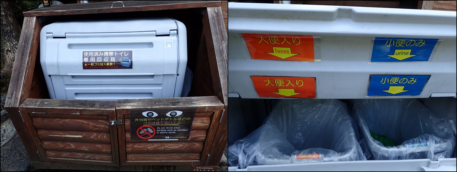最後は全員で登山口の看板や使用済み携帯トイレ回収ボックスを掃除しました。