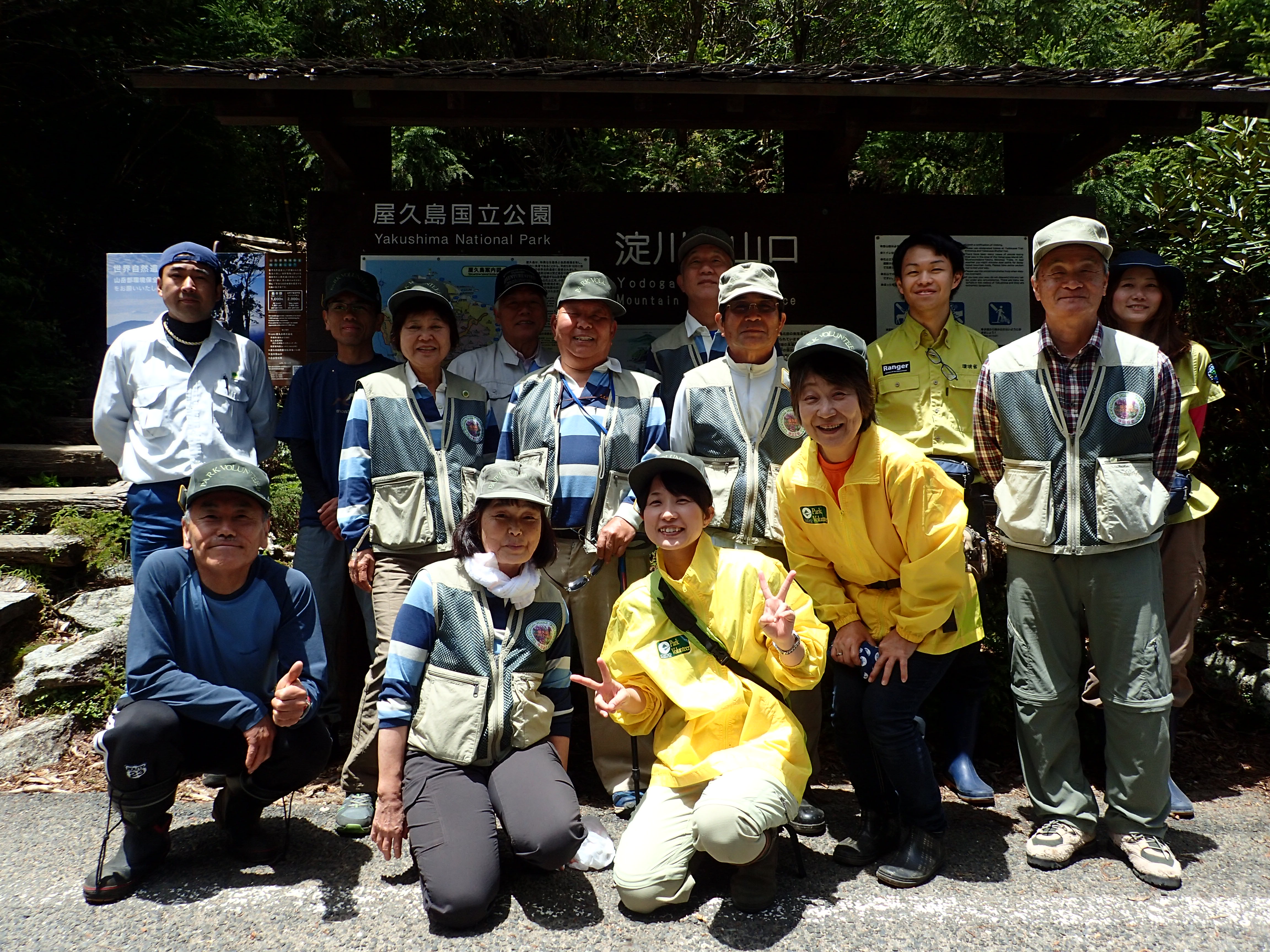 例年屋久島国立公園パークボランティアの会では、この登山イベント前に登山道の補修や看板の清掃をしていましたが、今年は登山道ではなく登山口までの道路(荒川三叉路~淀川登山口)の看板清掃と枝払いを実施しました。