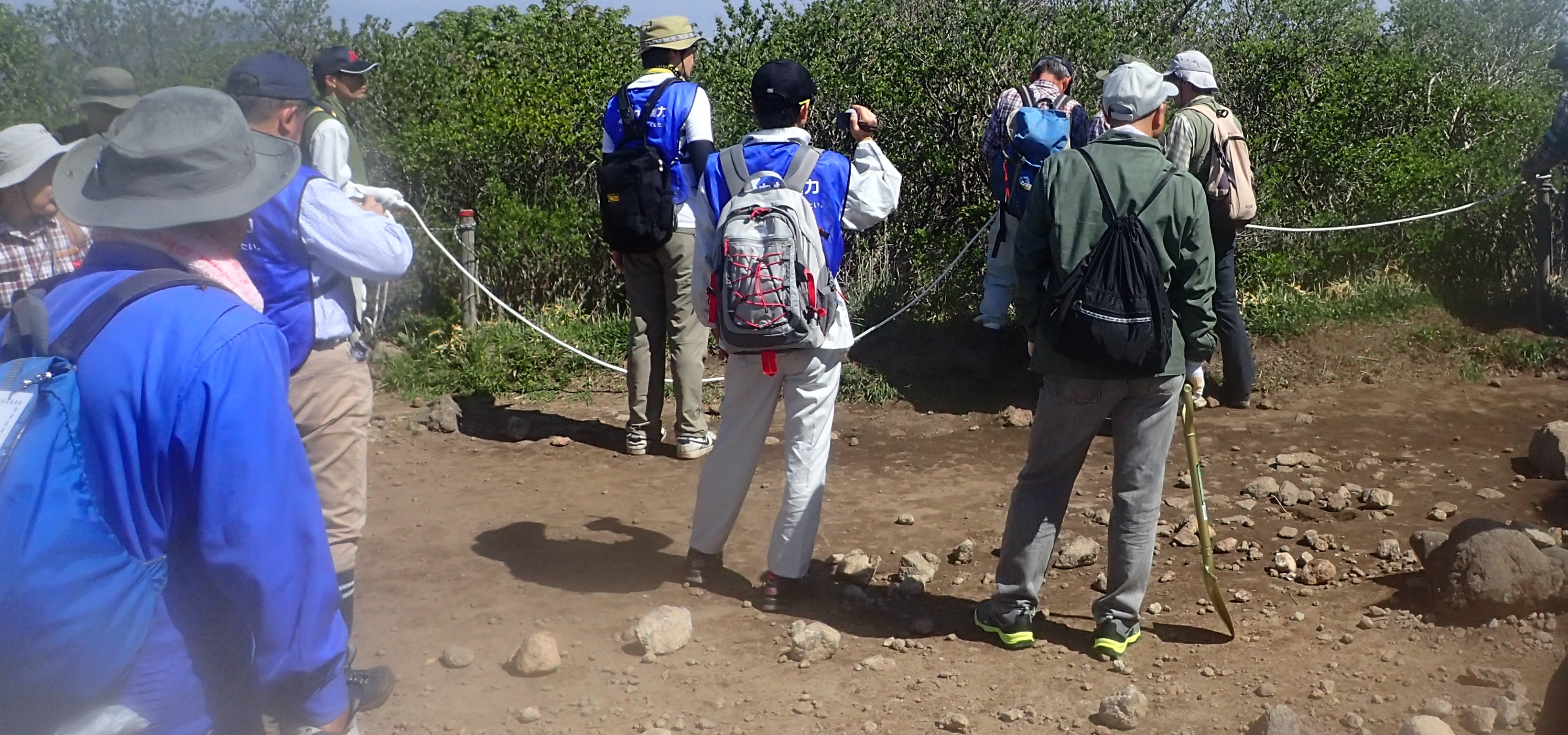 活動内容は登山道のロープ張り替え、ゴミ拾い、杭の打ち直し、登山道の水切り等です。
