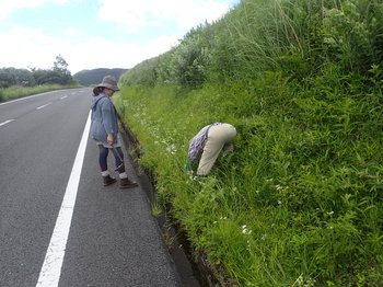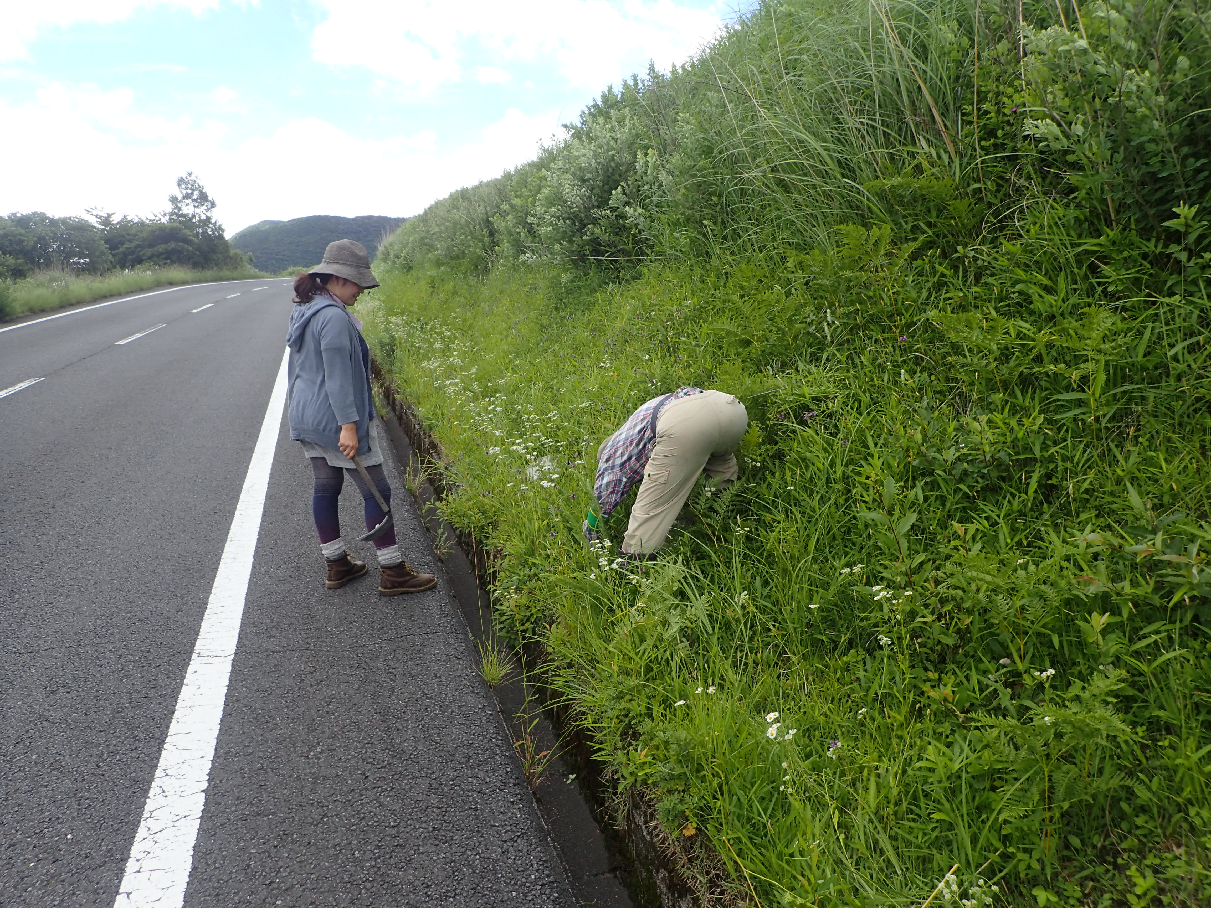 道路脇にあるヒゴタイを探しながら一本一本草を刈ります。