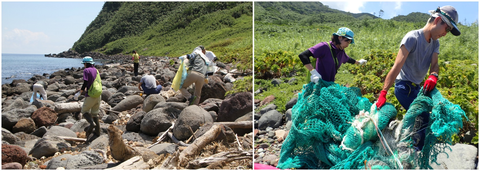 ▲清掃前(左)と清掃後(右)の海岸。